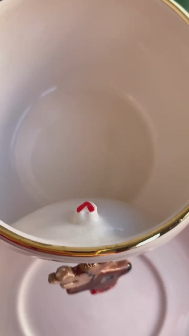 This product includes a ceramic Deer figure attached to the fixed ring in the cavity on the cup. Since the ring is produced together with the cup during the production phase, it does not come off.